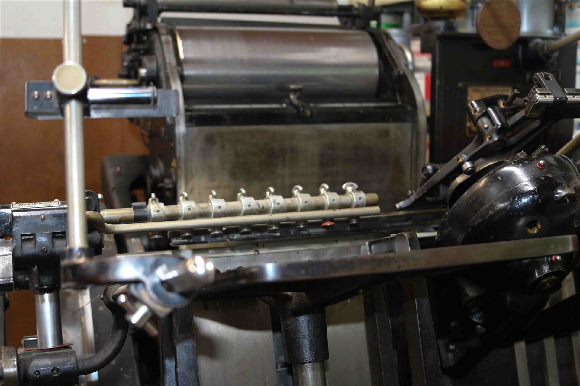Konkret: Die Druckplatte wird mit jeder Umdrehung des Zylinders von Feuchtwalzen zunächst befeuchtet, dann von den Farbwalzen mit Farbe versehen. Die Bereiche, die zuvor Wasser angenommen haben, bleiben farbfrei, auf dem Papier also weiß. Die anderen nehmen dagegen Farbe an, sie werden eingefärbt. Das sind später auf dem Bedruckstoff alle farbtragenden Elemente wie beispielsweise Texte, Linien oder Rasterpunkte.